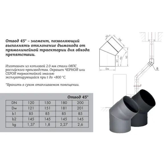 Черная или серая труба для печи-камина выглядит гораздо привлекательней трубы из нержавеющей стали. Черный дымоход логично завершает конструкцию Печь+Труба. Труба для печи-камина красится уже на производстве в черный или серый цвет и не требует дополнительного подкрашивания на месте. Сталь марки 08ПС - это котловая сталь, которая выдерживает кратковременный нагрев до 1100° C (температура горения сажи) не разрушаясь, что гарантирует безопасную и длительную эксплуатацию дымохода и печи.