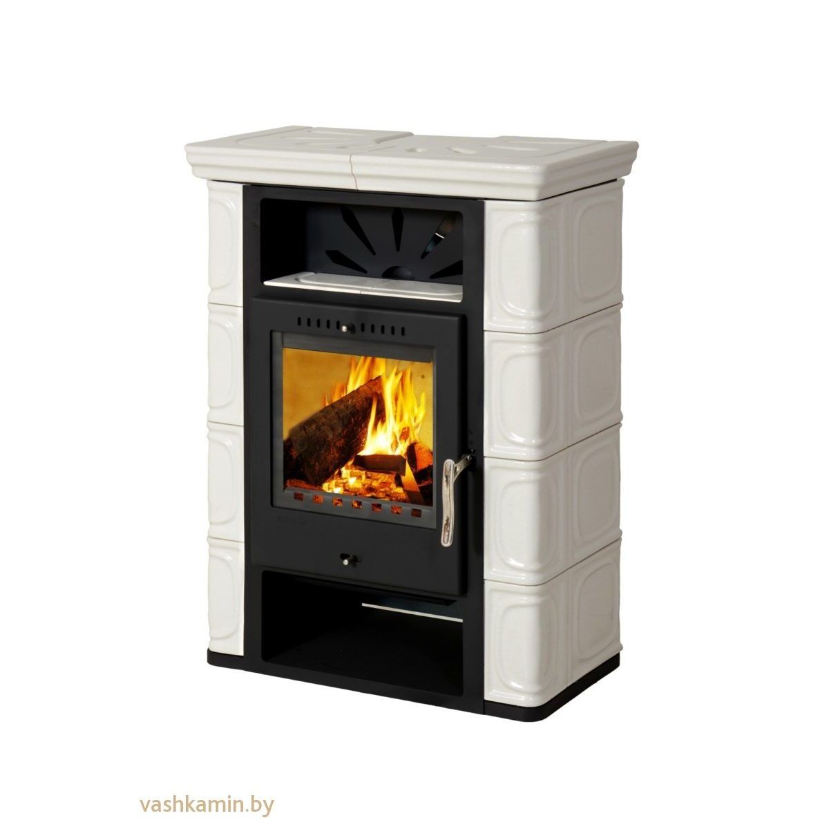 • Материал и дизайн: Керамический корпус (доступен в разных цветах), который медленно нагревается и долго отдает тепло, а также стеклянная дверца для обзора пламени.