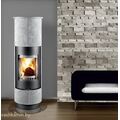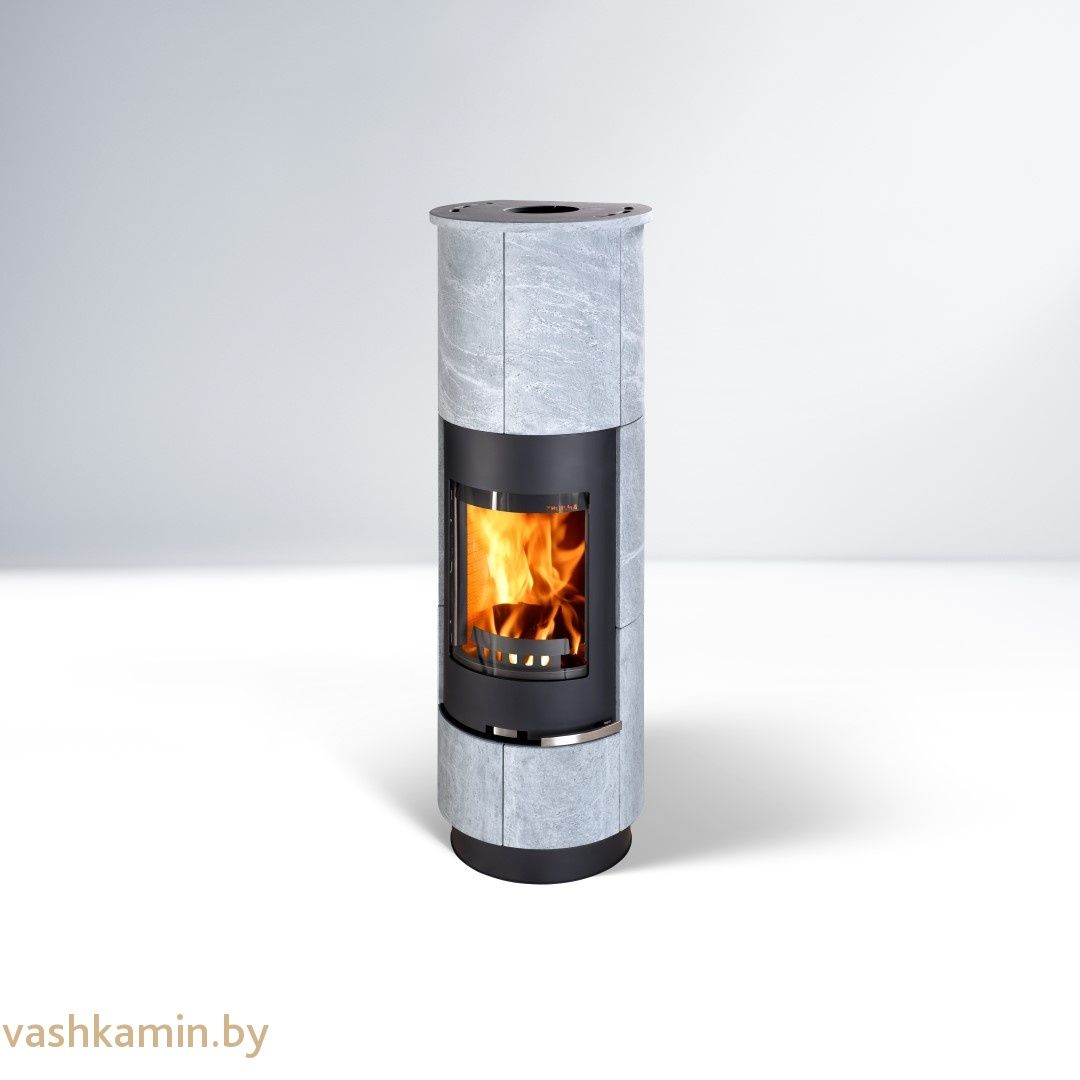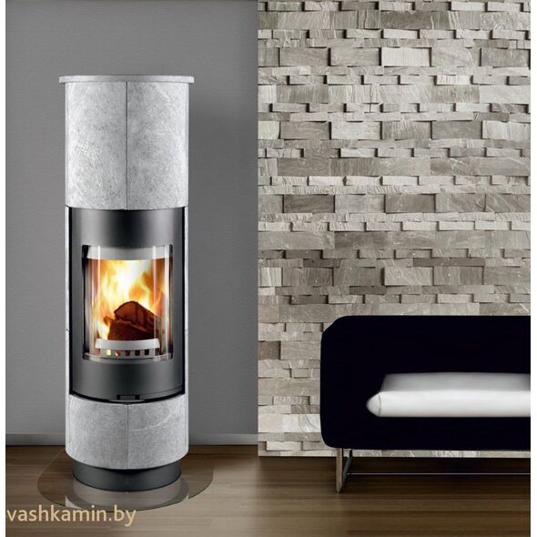 Печь-камин «Thorma Delia» отличается своим привлекательным дизайном. Керамическая облицовка в виде правильных, геометрических квадратов, украшает ее круглую, слегка вытянутую форму, на всю высоту.