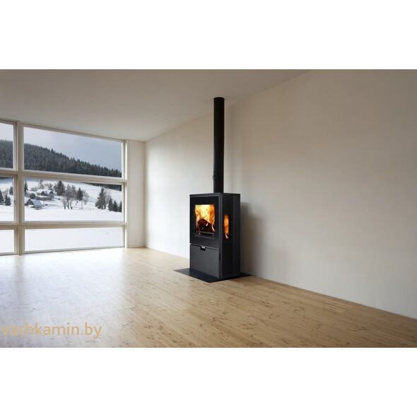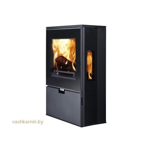 Печь WIESBADEN обладает внушительным по размеру фронтальным стеклом. Ее корпус отделан черной глянцевой керамикой. Внутри камеры футеровка сделана из вермикулита. Печная дверь задвигается в бок, обладает специальным доводчиком. Внизу расположена ниша оснащенная дверцей. В ней удобно хранить дрова. Прямо под дверью находятся рычаги, позволяющие регулировать горение. Диапазон мощности равен 4-12 кВт, а номинальная мощность составляет 8 кВт.
