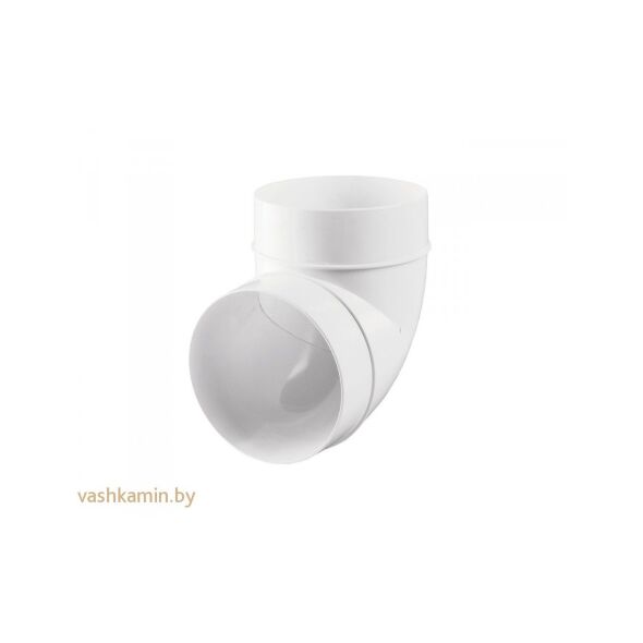 Применение Для приточной или вытяжной вентиляции различных помещений. Для соединения воздуховодов одного диаметра под углом 90°. Конструкция Изготовлено из пластика белого цвета. Присоединительные диаметры: 100, 125, 150 мм.